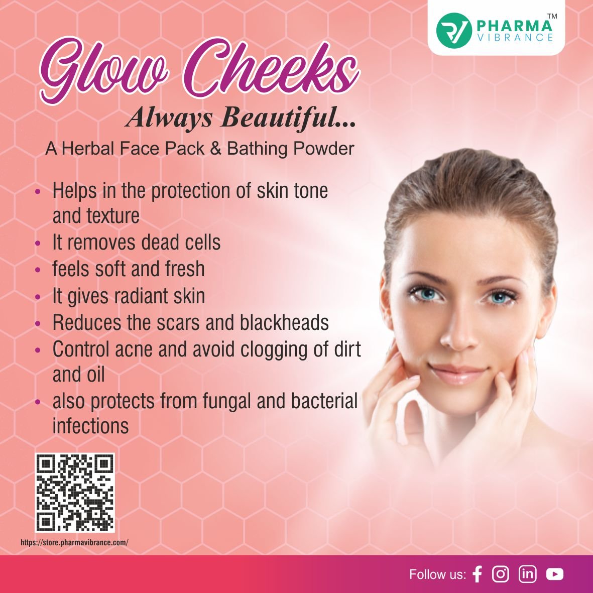 • Glow Cheeks helps in the protection of skin tone and texture. It removes dead cells, feels soft and fresh. It gives radiant skin and reduces the scares and blackheads. Control acne and avoid clogging of dirt and oil, it also protects from fungal and Bacterial infections.