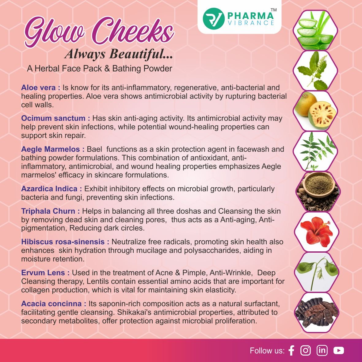 • Pharma Vibrance has created a one of the unique formulations by using carefully & scientifically selected 15 herbs for Skin protection.